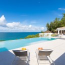 The heated infinity pool offers a serene retreat, boasting uninterrupted views of the ocean and Anguilla Island. Outdoor spaces include a sunlit terrace and a cozy lounge area, ideal for al fresco dining or unwinding in style.