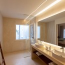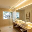 Spread across two levels, the villa features spacious bedrooms, each outfitted with a luxurious king-size bed. Three bedrooms are conveniently located on the main level near the kitchen and living room, while two additional bedrooms are on the lower level. Each bedroom has a modern, elegantly designed en-suite bathroom, and all rooms are equipped with smart TVs, perfect for relaxing after a day of island adventures.