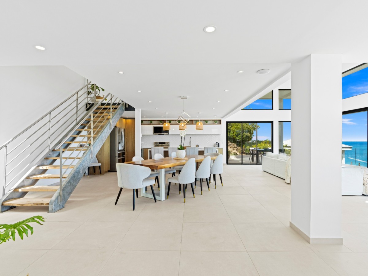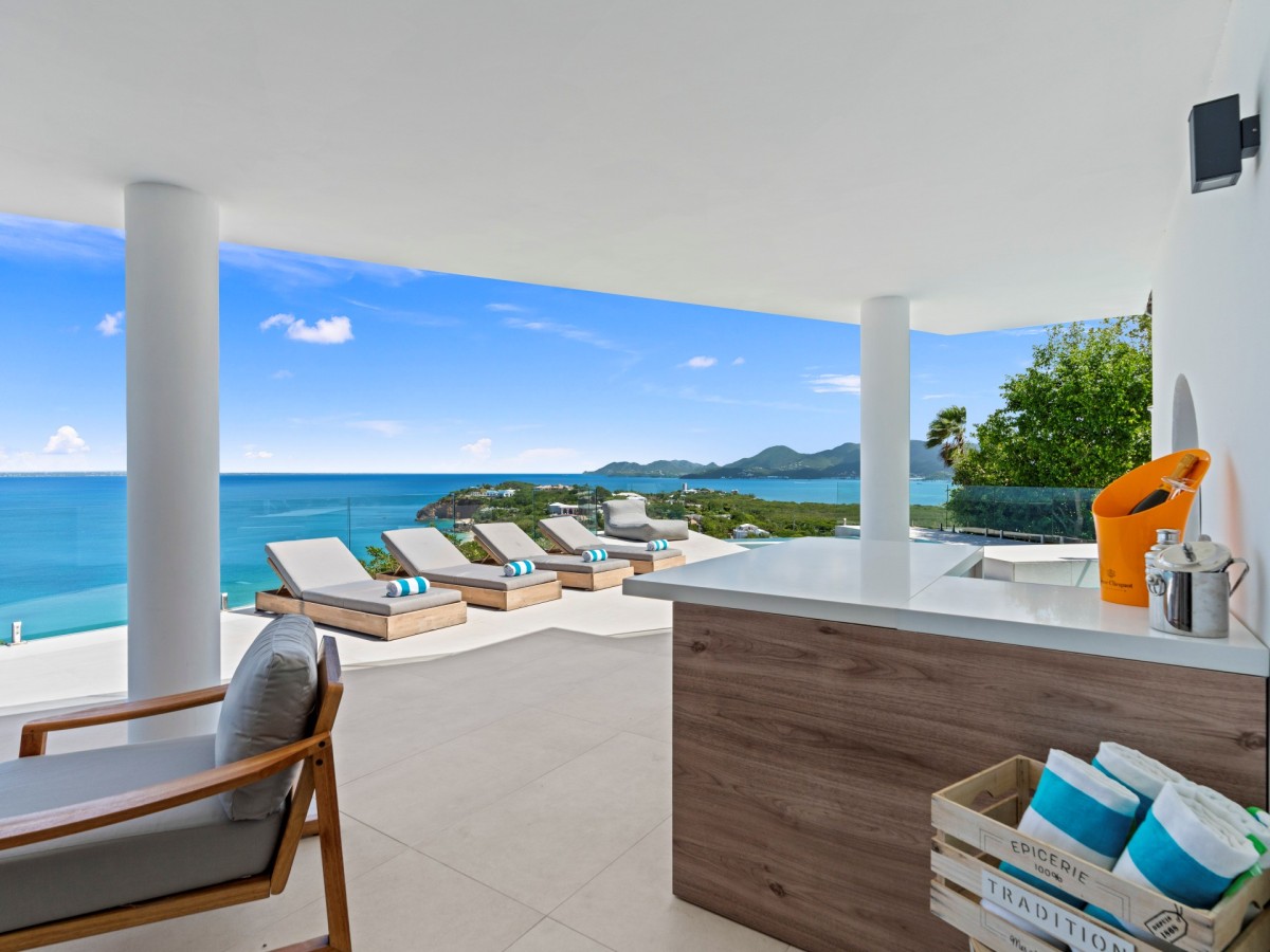 Meticulously fashioned, the villa's design draws inspiration from modern aesthetics, enriched by sophisticated design details. Boasting four bedrooms, Villa Aqua Rock epitomizes the essence of tropical paradise. Perched elegantly above Baie Rouge, it grants you access to breathtaking vistas of the Caribbean Sea's turquoise allure, the Atlantic Ocean's expanse, and the sinuous beauty of St. Martin's coastline.