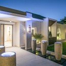 The Avanti Villa has décor that is African themed both inside and out. It offers furnishings by Roche Bobois and Manutti along with touches of burnt orange, natural wood accents, and primitive art and textiles. The entrance leads to modern living and dining rooms as well as a television corner with an 82-inch flatscreen. Right next to these rooms is the light wood kitchen. It contains Sub Zero and Wolf stainless steel appliances, a breakfast bar, and a spacious island.