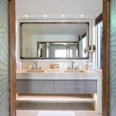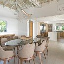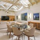 For other cooking needs, the outdoor area includes a dining area for up to eight and a gas Wolf grill on a magnificent terrace. The living room and kitchen both have glass sliding doors that can be left open to enjoy the tropical breeze or be closed for climate-controlled comfort. The terrace outside also offers a spacious lounge area and an area for dining alfresco under the stars.