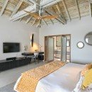 Bedroom 5: Ground floor bedroom with a king-size bed, A/C, ceiling fan, TV, safe and en-suite bathroom shower, double vanity and WC. 2 guests maximum.