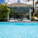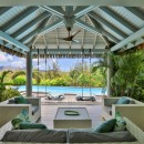 The villa, however, can easily become your entire destination. The terrace that stretches the front of the property features a large swimming pool that steps down to another, smaller, plunge pool. There are wooden and stone patios around both, and a large array of gazebos, covered terraces and sun decks. A luxurious al fresco dining spot is found here as well as an outdoor bar and kitchen.