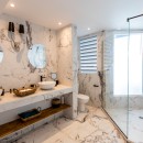 On the lower level, accessible via outside stairs, three additional rooms await, with two of them boasting direct access to the second pool and the gym. This level presents a secluded sanctuary, ensuring a serene and exclusive experience for guests.
