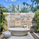 A three-bedroom villa, it has been recently renovated and offers a truly spa-like esthetic. With Asian-inspired design, it features clean and uncluttered spaces that promote and enhance your sense of relaxation and calm. Each of the bedroom suites is a private paradise with a king-sized platform bed, sitting area, access to the terrace or gardens, and a stunning bath. Some have outdoor tubs or showers, and each gives a spa-like experience.