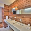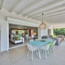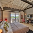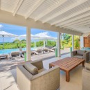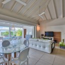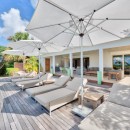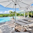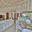 The shared living spaces are equally appealing and include the pool terrace with its irresistible lounging pavilion over the water, a sun deck, and covered terrace space with full-sized lounge, formal dining area, and barbecue. Just inside, a great room features the same simple lines and appealing décor that offers an instant sense of calm and relaxation. High white ceilings and cool marble floors, white furnishings accented with darkly stained wood tables and doors, and a few innovative bursts of color make this a fantastic space. It contains the TV lounge and living room along with the breakfast bar and full-sized kitchen open to the garden and the views.