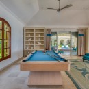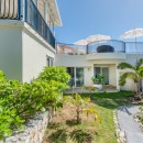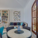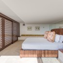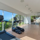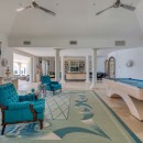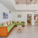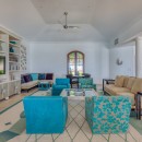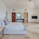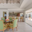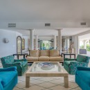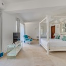The impressive entry provides an inviting glimpse of the turquoise waters of the ocean, with multiple seating areas on either side. Guests will enjoy an indoor/outdoor feeling with arched doorways open to the outdoors and a protected terrace furnished with white and rattan seating. Villa La Dacha has every amenity for a relaxing island vacation, including a nicely equipped seaside gym.