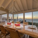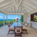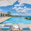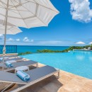 This luxurious St Martin villa rental provides great privacy, with its secluded Falaise des Oiseaux location and en-suite baths with showers in each of the five air-conditioned bedrooms. The spacious, state of the art kitchen and lovely dining areas make this villa the perfect place for entertaining. For casual meals there is a long breakfast bar off the kitchen and a glass topped breakfast table. Outside, a dining table is perched at the edge of the terrace so to capture water views..