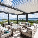 The terrace at Villa La Siesta will take you into the villa, where you can enjoy the living room and lounge space inside the contemporary great room.
