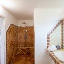 Across the pool deck are three bedrooms . Each of them has a spacious private bath and access to the grounds or terrace. The suites below lead into the gardens and have either king or double beds and modern electronics.