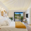 Bedroom 2: Bedroom with a king-size bed, A/C, TV, safe, pool view, and en-suite bathroom with shower, vanity and WC. 2 guests maximum