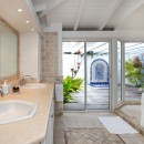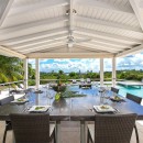 This lovely villa estate features a fabulous pool setting. The beach entry pool is surrounded by lush tropical landscaping. The extensive covered porch overlooking the gorgeous shimmering blue pool is just another wonderful addition to this luxurious home. This luxurious villa rental will allow you to enjoy an island ambiance with the airy poolside kitchen, handy bar and the BBQ is perfect for outdoor entertainment.