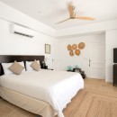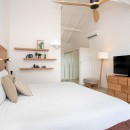 Bedrooms 1: Master bedroom with a king-size bed, A/C, ceiling fan, WiFi, TV, DVD, private terrace and en-suite bathroom with shower, vanity and WC. 2 guests maximum. The master suite has an outdoor shower in enclosed garden area. Interior and exterior access.