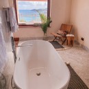 Bedroom 1: Master bedroom with a king-size bed, A/C, living area, private terrace, ocean view, and en-suite bathroom with bathtub, shower, vanity, and WC. 2 guests maximum