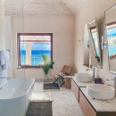 Four bedrooms (three kings and one two-twin room) with six bathrooms make Coral Hill the perfect size for six guests, but a study room with a sofa bed may sleep another two, for a total of eight guests in all. En-suite bathrooms have beautiful round basin tubs and marble showers and bedrooms have ocean views with patios or terrace access. The two single beds are in a separate cottage bedroom.