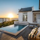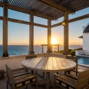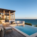 This single-level home features sweeping ocean views, a fully equipped kitchen, and an airy open-plan living and dining area. Sliding pocket doors connect the indoor spaces to a spacious outdoor deck, complete with a heated pool, sun loungers, and alfresco dining—perfect for relaxing in the island breeze.