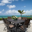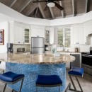 Inside, tranquility awaits in the form of six masterfully appointed bedrooms, each boasting king-sized beds (with twin options in two rooms), open-air showers and baths, and personal terraces offering sweeping panoramas of the ocean. Whether dining indoors or al fresco, Villa Cascade accommodates with ease, providing ample seating for up to twelve guests. A state-of-the-art chef’s kitchen, complemented by an outdoor grill and wet bar, sets the stage for culinary adventures, allowing guests to indulge in freshly caught seafood prepared to perfection.