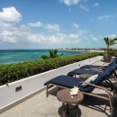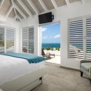 Bedroom 5:Third-floor bedroom with a king-size bed,TV, ocean view, and en-suite bathroom with outdoor bathtub and shower, double vanity, and wc. 2 guests maximum.