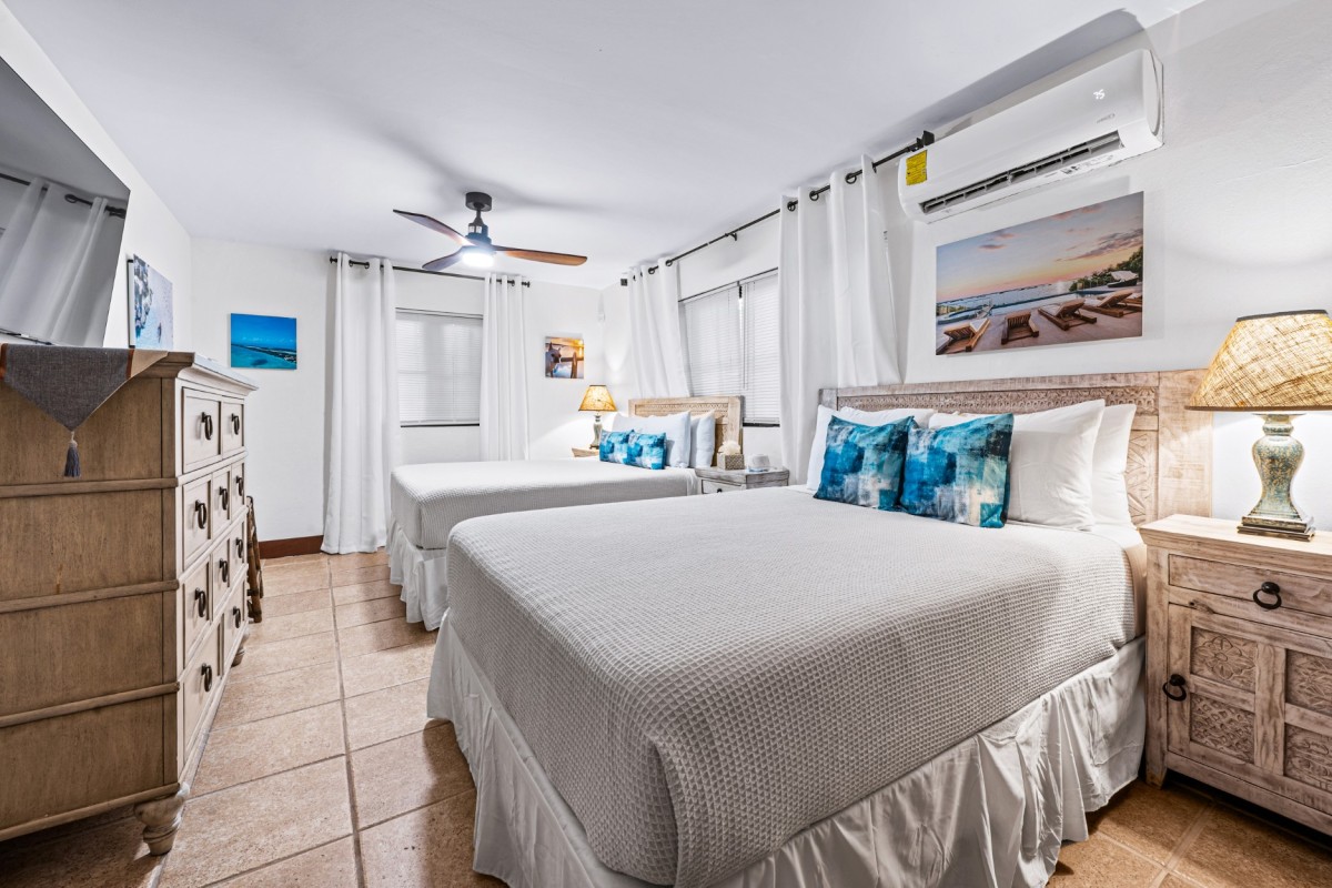 Bedroom 4: Bedroom with two queen-size beds, A/C, WiFi, TV, and en-suite bathroom with shower, vanity, and WC. 2 guests maximum.