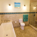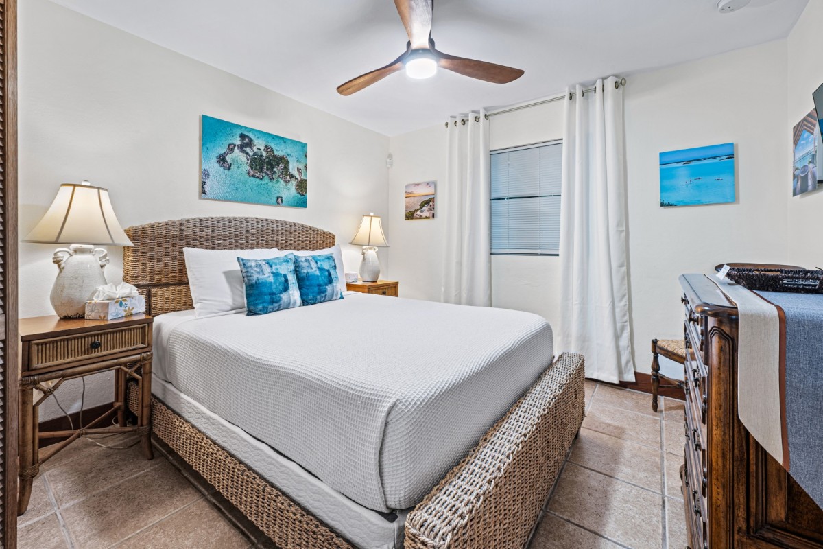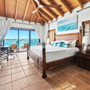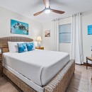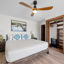 Bedroom 1: Master bedroom with a king-size bed, ceiling fan, A/C, WiFi, TV, walk-in closet, access to terrace with ocean view, and en-suite bathroom with bathtub, shower, double vanity, and WC. 2 guests maximum.