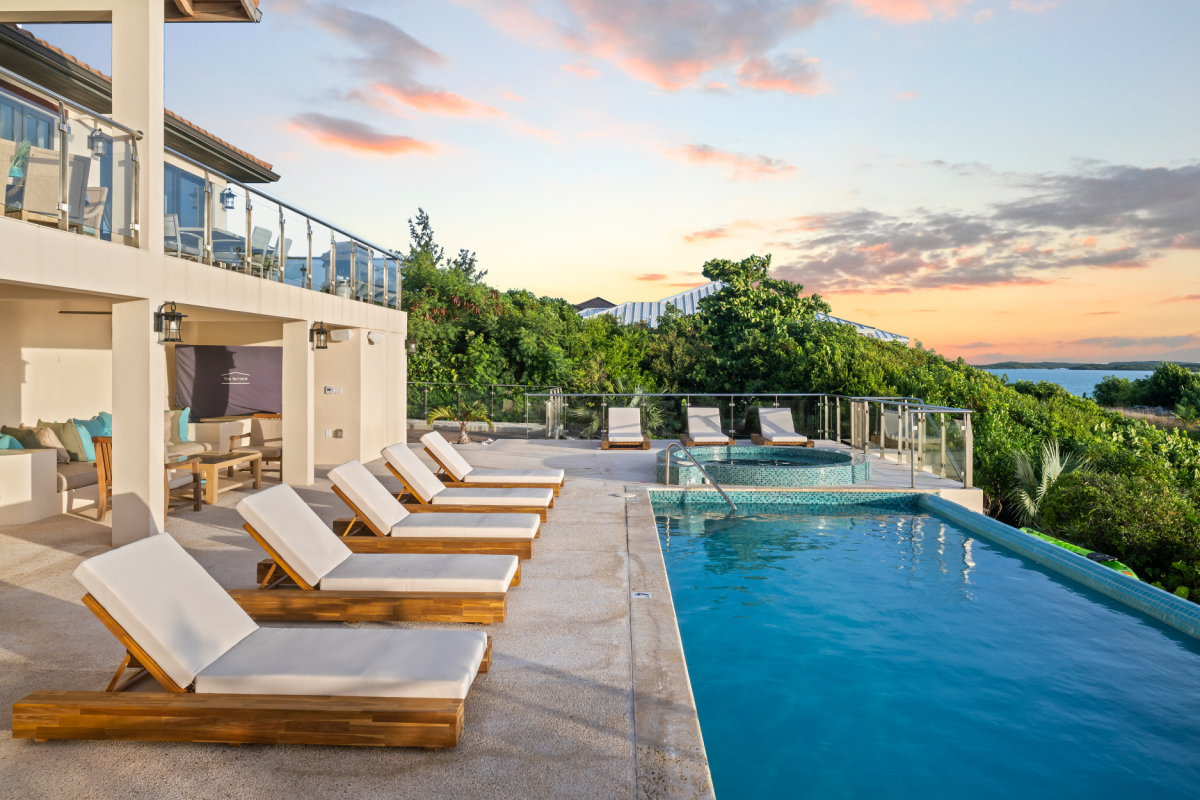 Take in sweeping ocean views from the teal-tiled swimming pool and the 12-person hot tub, or relax on the expansive terraces totaling 3,350 sq ft. The upper terrace offers panoramic views of Chalk Sound, perfect for morning yoga or evening cocktails, while the oceanfront pool deck features plush lounge seating, a poolside bathroom and shower, and direct access to the sea via private stairs. Complimentary kayaks, paddleboards, and snorkeling gear are included for your ocean adventures.