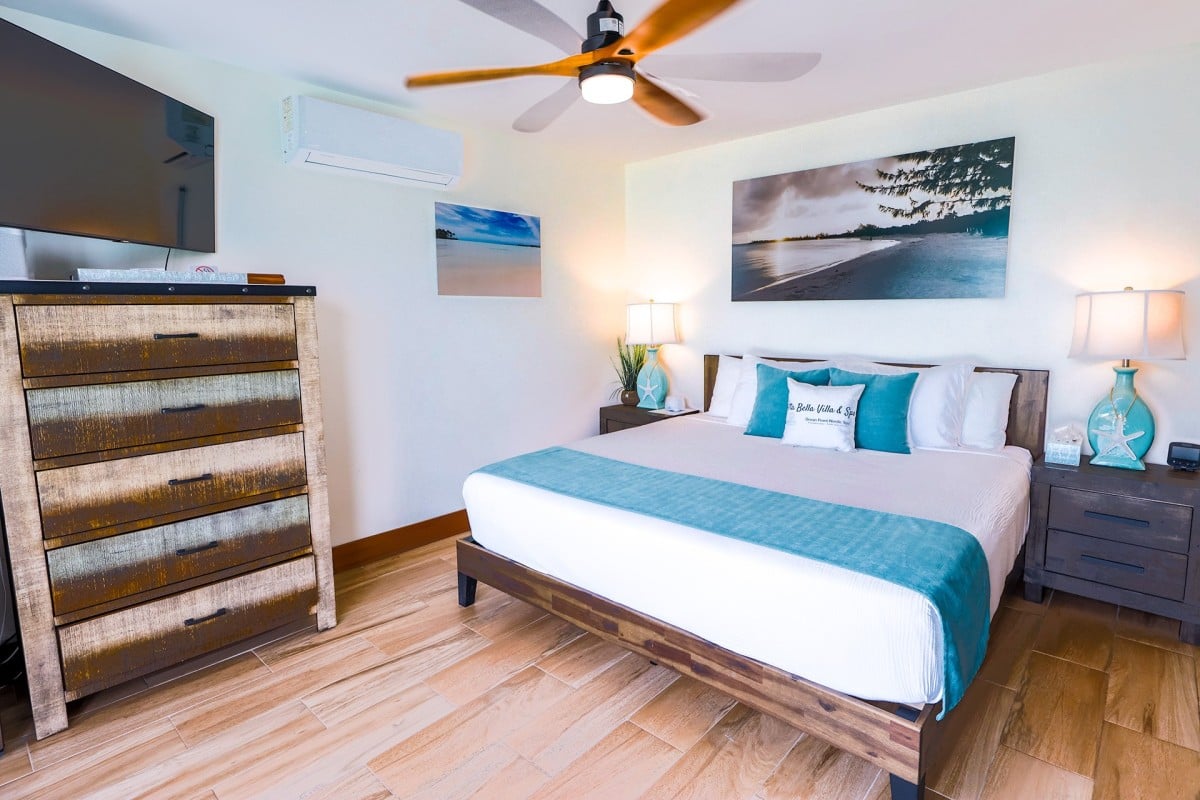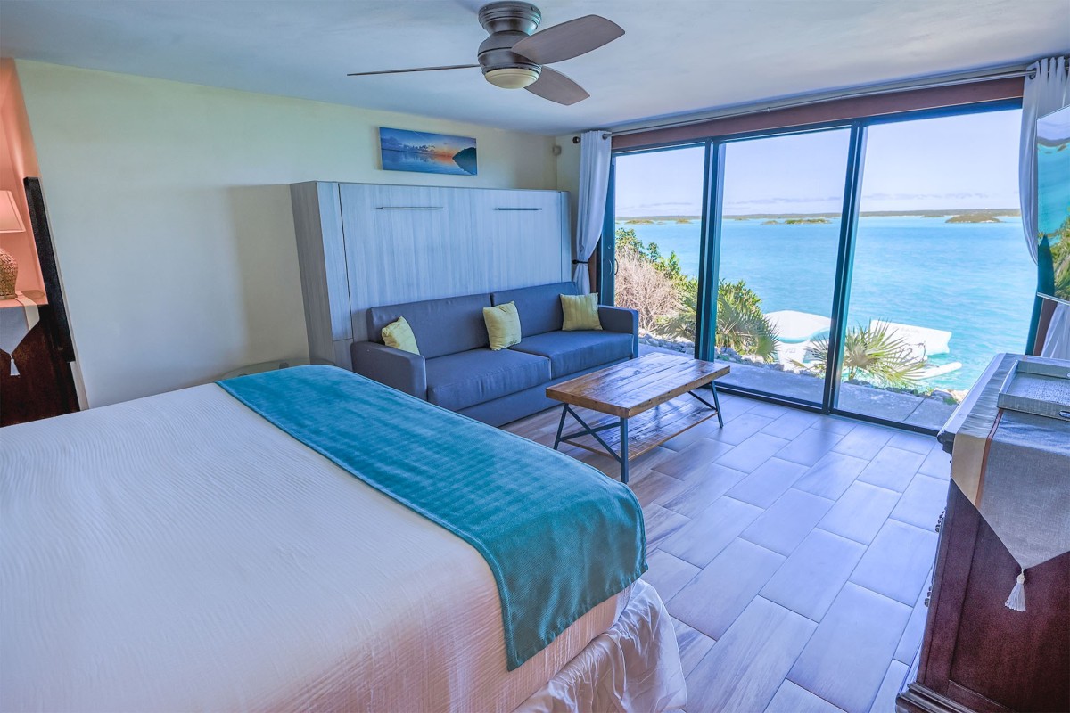 Bedroom 6: Bedroom with a king-size bed, a queen-size Murphy bed, A/C, WiFi, TV, kitchenette, ocean viewand en-suite bathroom with shower, vanity, and WC. 2 guests maximum.