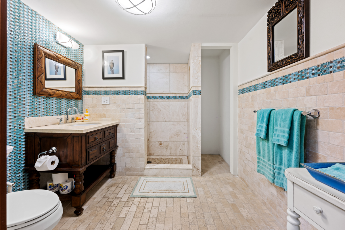 The estate features seven beautifully appointed bedrooms, including five king suites, each with a private ensuite bathroom, and two additional queen bedrooms. Three king suites enjoy full ocean views, while another offers partial ocean views. All ten beds are outfitted with luxury foam mattresses to ensure exceptional comfort throughout your stay.