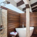 Bedroom 1: Master bedroom with a king-size bed, A/C, ceiling fan, TV and en-suite batrhoom with outdoor bathtub, shower, double vanity and WC. 2 guests maximum.
