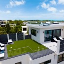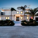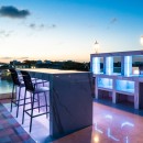 An external staircase leads to the rooftop terrace, a spectacular 2,000-square-foot entertainment space offering 360-degree panoramic views of the surrounding waters. This elevated retreat boasts a curated bar for crafted cocktails, a plush lounge for intimate gatherings, a mesmerizing fire pit for cozy evenings, and a state-of-the-art entertainment system that immerses you in an atmosphere of relaxation and indulgence.