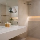 Adjacent to the main villa, the ground-floor guest cottage offers two serene, garden-view bedrooms, each featuring a king-size bed, ensuite bathroom with a shower, and a private terrace. One of these bedrooms can be converted into two twin beds, providing flexible accommodation options.