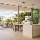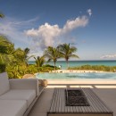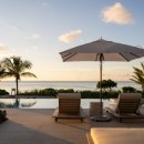 The villa’s outdoor space is designed for luxury and comfort. A covered terrace includes an outdoor kitchen and dining area, perfect for al fresco dining under the stars. The space also features a cozy firepit, plush lounge seating, and a 41-foot infinity-edge pool with an adjoining jacuzzi, sunken pool lounge, and sundeck. This exceptional outdoor setting offers year-round indoor/outdoor living and showcases the most spectacular sunsets on the island.