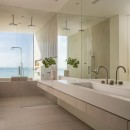 The upper floor houses four spacious guest bedrooms, each boasting stunning ocean views, king-size beds, and luxurious ensuite bathrooms complete with separate bathtubs and walk-in showers. Two of the bathrooms also feature outdoor showers for a unique, open-air experience. For added convenience, a second laundry room is located on this floor.