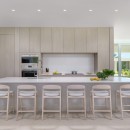 Outdoors, enjoy a covered deck with a summer kitchen, an expansive sun deck, and an impressive 50-foot infinity-edge pool with a hot tub, shallow lounging platform, and a 47-foot beachfront deck. A sunken fire pit lounge nestled within the private garden rounds out this unparalleled beachfront experience.