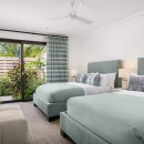 Bedroom 2: Ground floor bedroom with two single beds, A/C, ceiling fan, TV, access to garden, walk-in closet and en-suite bathroom with shower, vanity and WC. 2 guests maximum