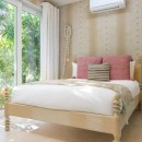 Bedroom 4: Bedroom with a queen-size bed, A/C, ceiling fans, garden view, and en-suite bathroom with shower, vanity, and WC. 2 guests maximum