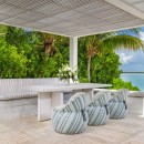 Each bedroom is a haven, equipped with spacious ensuite bathrooms, outdoor showers, private exterior deck spaces, flat-screen televisions, and ample closet space. The master bedroom provides stunning views of both the pool and the ocean, while the remaining three suites offer picturesque garden views.