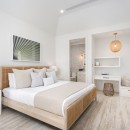 Bedroom 1: Master bedroom with a king-size bed, A/C, ceiling fan, TV, private terrace, ocean view, walk-in closet, and en-suite bathroom with bathtub, shower, double vanity, and WC. 2 guests maximum