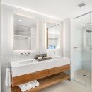 The remaining bedrooms are found on the ground floor. One is a garden suite that comes with a king bed and a private bathroom with a shower. The other is a second master suite with deck access, a king bed, a walk-in closet, and a private bathroom with a double vanity, bathtub, and shower. All of the rooms are meticulously detailed and designed to offer a great night’s sleep.