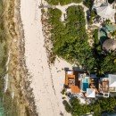 Villa Beach Cake, Turks & Caicos, Turtle Cove. The 1600 ft², two-bedroom, two-and-a-half bathroom, Villa Beach Cake (formerly Villa Wild Cherry) completed an impressive and extensive renovation in 2020. Situated on a half-acre lot, the villa’s architecture is inspired by the “upside-down house” style. The location provides gorgeous panoramic views of the ocean.