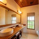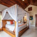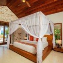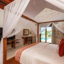 The bedroom is a masterpiece of design and romance. It features a four-poster, platform bed that is sure to delight. It opens directly to the portico area of the terrace where views of the gardens and the sea are in great abundance. The ensuite bath is designed for two and includes dual vanities and premium fixtures.