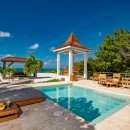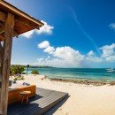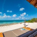As noted, it sits right along the sands and offers amazing sea views. It features its own private beach cabana furnished as an outdoor lounge. There is a dining pavilion nearby the cabana and gazing out at the views, and a private boardwalk leads back from the beach to the villa’s private pool terrace. This is an utterly charming spot with a generously sized plunge pool framed by a coral stone terrace. It has a full-sized sun bed that reclines for comfort as well as another dining spot just outside the oversized French doors leading indoors.