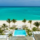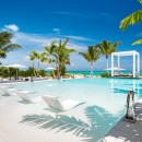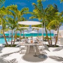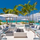 A 4,200-ft² pool terrace offers entry into a zero-edge beach. There are plenty of comfortable places to relax and enjoy the Caribbean sunshine or sit beneath one of the many palm trees to enjoy the shade. There are outdoor dining and lounge areas that lead to a built-in 20-person firepit lounge and a hot tub deck.