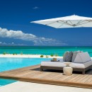 Perched just above the powder-soft sands of Grace Bay, the expansive pool terrace is intentionally tucked away from beachgoers’ view, while private steps lead directly to the sea. At its heart is a stunning, oversized perimeter-overflow pool featuring a tanning ledge, a hot tub, and ample space for laps. Surrounding the pool are plush daybeds, shaded lounges, and a breezy cabana — perfect for relaxing beneath the Caribbean sun. As evening falls, the outdoor living spaces come alive with a firepit, floodlit pickleball and half-basketball court for after-dark enjoyment.