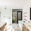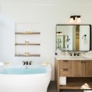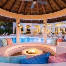 Some of the other amenities that stand out include an open living space that bridges the indoor and outdoor areas, an indoor-outdoor bar for sipping cocktails and entertaining, and several shared lounge and dining areas. When you step farther outside, you’ll have the chance to experience a curved poolside lounge with a fire pit, a yoga and sunbathing deck, and two different pools.