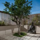 The main deck offers a variety of relaxation spots, featuring lounge chairs strategically positioned within the pool, sun beds lined up alongside it, and hanging cocoon chairs on the deck. An expansive overhang provides ample space for dining or unwinding in the refreshing shade.