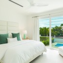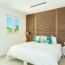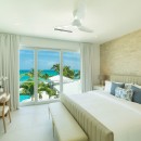Bedroom 5: First-floor Master bedroom with a king-size bed, TV, A/C, ceiling fan, ocean view and en-suite bathroom with shower, double vanity and WC. 2 guests maximum.