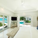 Bedroom 2: Ground floor Master bedroom with a king-size bed, TV, A/C, ceiling fan, access to pool terrace and en-suite bathroom with shower, double vanity and WC. 2 guests maximum.