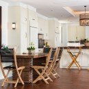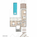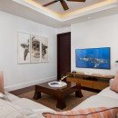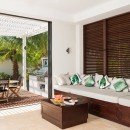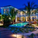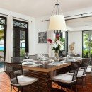 Returning from the beach along your private wooden boardwalk, you will see the villa at its finest. An L-shaped, Colonial two-story, it frames the pool terrace, and offers an impressive range of stylish outdoor living spaces. A portico protects the barbecue and al fresco dining space, a massive sun bed sits along the sands and features an irresistible fire pit, a wooden deck frames one end of the pool, and columned porches lead into the shared living spaces.
