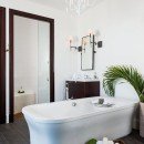 The five spacious and beautifully decorated bedrooms are split between the upper and lower levels. The master suite is on the upper level and features a king bed, private balcony that looks towards the sea, an ensuite bath with rain shower and enormous pedestal tub. Three other bedrooms are located on the upper level with a fifth bedroom located on the ground floor.