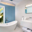 Bedroom 4: Upper floor bedroom with a king-size bed, A/C, TV, private terrace with ocean view, closet and en-suite bathroom with bathtub, shower, double vanity and wc. 2 guests maximum
